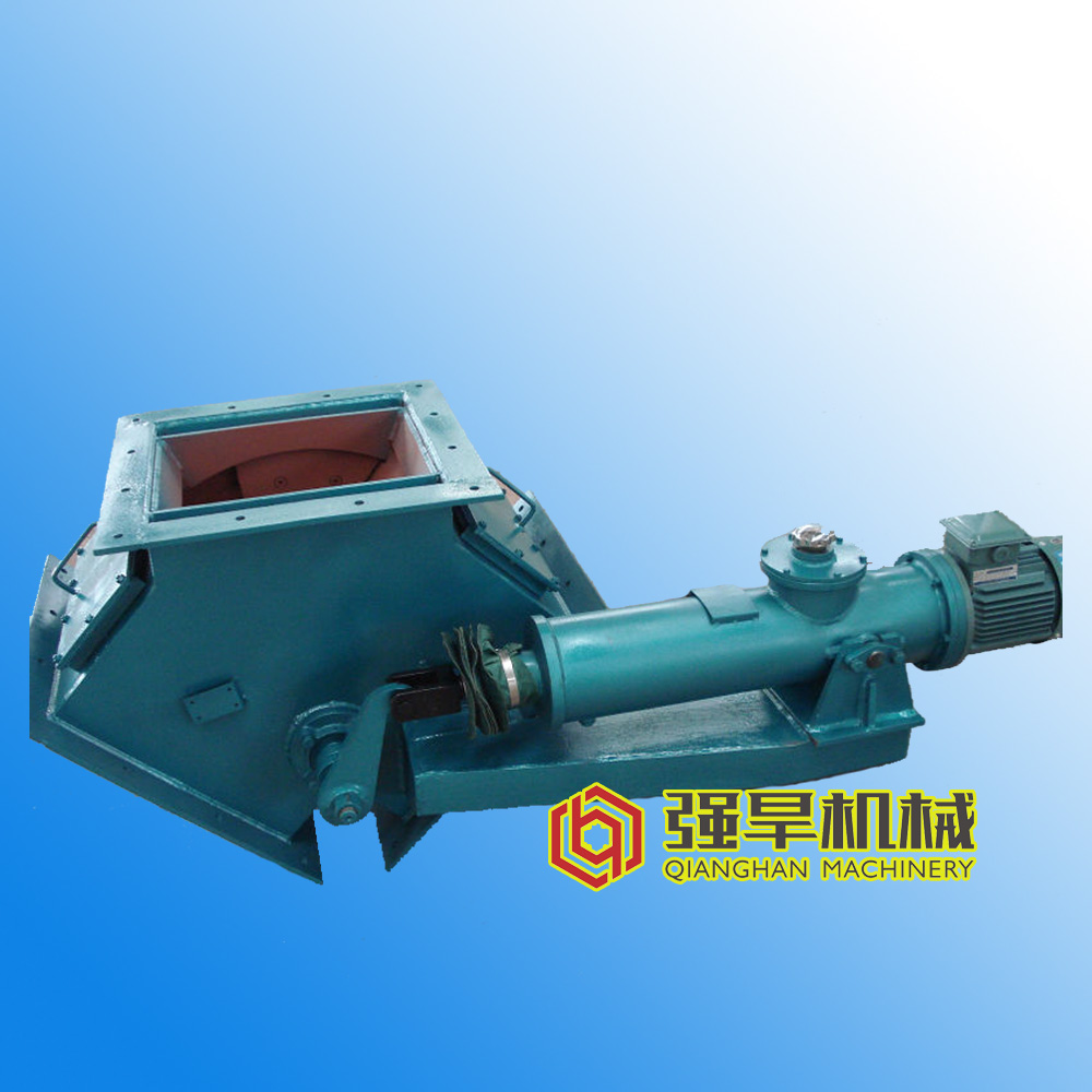 電液動(dòng)三通分料器的工作原理是通過(guò)電液推桿帶動(dòng)三能分料器的轉(zhuǎn)軸機(jī)構(gòu),來(lái)控制翻板翻轉(zhuǎn),達(dá)到物料換向的作用。