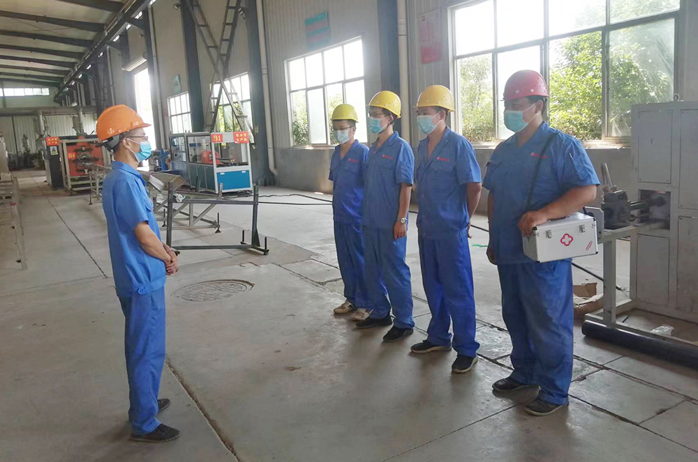 支部書記侯成安帶領(lǐng)各部門主管學(xué)習(xí)防疫知識,宣傳防疫政策